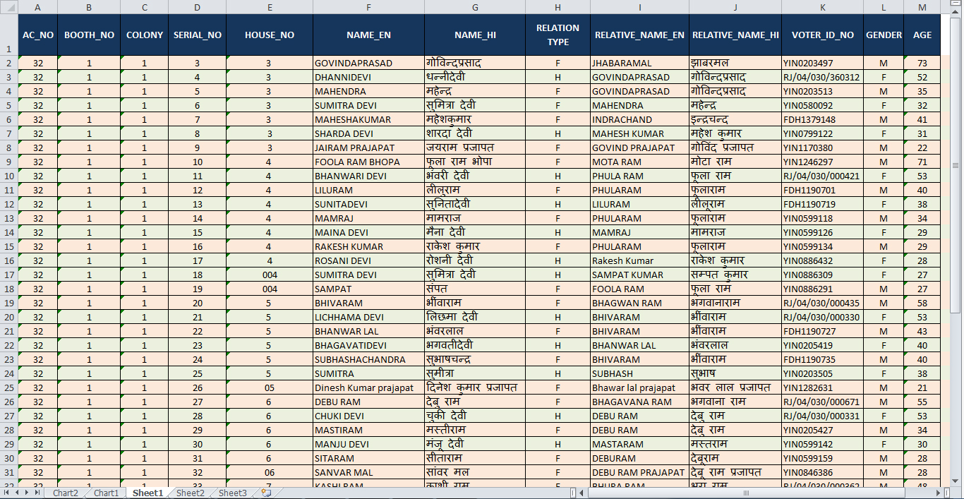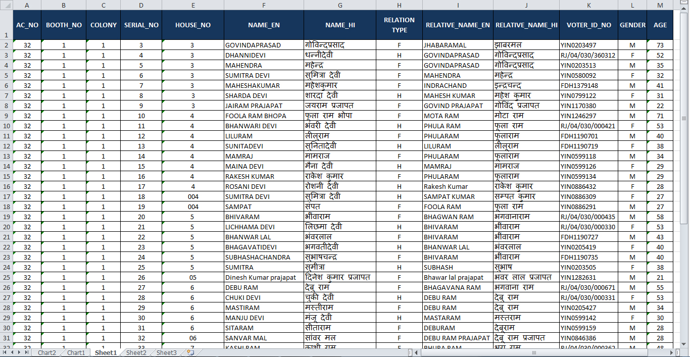 Voter List in Excel Formet